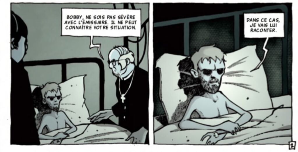 Graphiquement, Stéphane Heurteau opte pour un noir et blanc nerveux d’une efficacité redoutable. Son travail sur le clair-obscur accentue la sensation de claustrophobie des H-Blocks. Les planches capturent l’épuisement des corps avec une pudeur poignante.