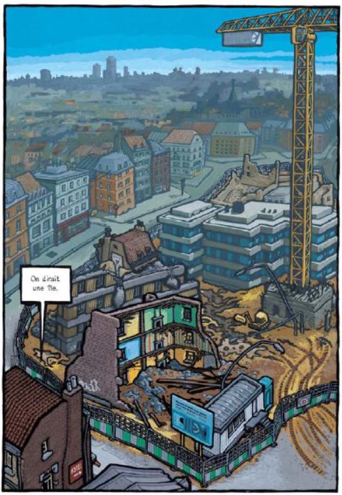 Un énorme chantier, entouré de palissades, griffe le quartier. On dirait une île. Des bandes de malfaiteurs y recherchent des mallettes pleines de billets : de l’argent pour les partis politiques.